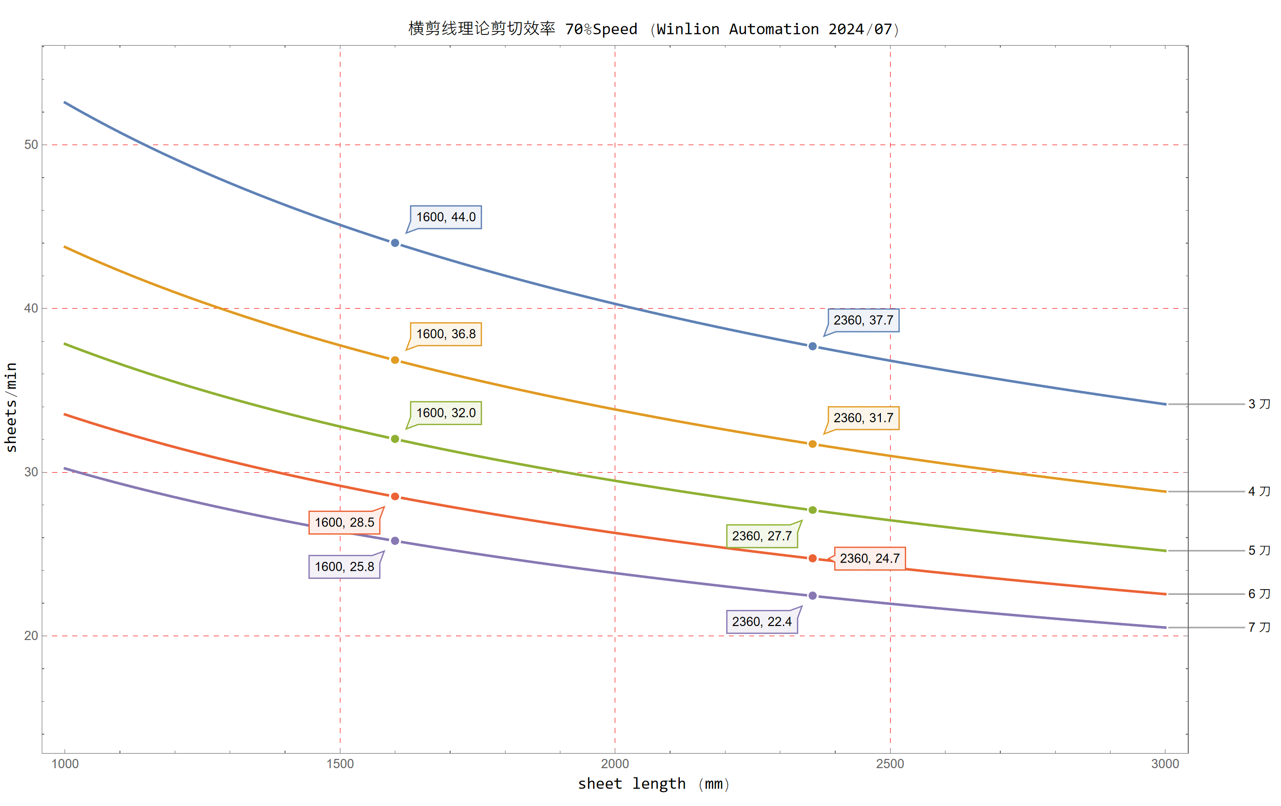1600片长,切4,5,6刀时的 效率分别为 36.8 、 32 、28.5 。 两图基本相同。